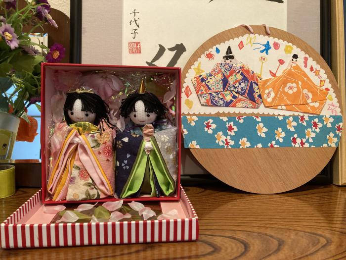昨日はひな祭り我が家には高校の友が手作りしてくれたかわいいお雛様が飾ってあります。それを2月あたりから玄関に飾り、毎日眺めて元気をもらっていました。もう嫁いでお母さんになっている娘が幼稚園の時作ったお雛様も横に飾って、3月節句のお祝いをしました。みんなが健康で笑顔で過ごせますように!戦争がない安心して暮らせる毎日でありますように。心から祈ります。