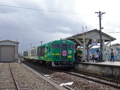 ▼【フラワー長井線に風っこ桜回廊号が走りました】
