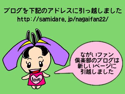 ながいファン倶楽部のブログを平成22年5月から新しいページに引越しました。新しいアドレス(PC版)はhttp://samidare.jp/nagaifan22/ (携帯はこちら)http://samidare.jp/nagaifan22/m/です。引き続き応援よろしくお願いします。尚、平成22年4月までのブログは引き続きこちらのページでご覧いただけます。ながいファン倶楽部の“新しいブログ”はこちらから【この記事は、ながいファン倶楽部のブログです】☆毎月1日・15日にファン倶楽部会員様へメールマガジンを配信♪▼お申込はこちらから!