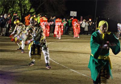 毎年のように雨だった伊佐沢念佛踊り。今年は晴れなので外でで開催されました!しかし気温はとても低く、「寒い〜寒い〜(-皿-)」と言いながら▼凍み豆腐汁をひとくち・・・温かくて心が癒されます(^O^)▼久保の桜はまだ咲いておりませんでしたがライトアップされた姿はいつ見ても見事なものです。念佛踊りの時期には毎年もう桜が散っているのに今年はまだ咲いていないなんて例年より春が遅いことを実感しますね。7時を過ぎるとグラウンドに大きなあかりが灯り、徐々に人が集まってきてにぎやかに!▼観光の団体さんもいらっしゃりあっという間にお客さんで埋め尽くされました。▼7時30分を回った頃伊佐沢念佛踊りが開催されました。県指定無形民族文化財・伊佐沢念佛踊り(大和踊)は伊佐沢・玉林寺創建の際に奉納されたと伝えられていて、事実ならば400年以上の歴史があります。▼今年は踊りの間に10分間の撮影タイムがあり、お客さんと踊り子さんが楽しく写真を撮っている姿があちこちで見られました。▼ちゃんとポーズもとってくれました(^O^)▼綺麗な踊り子さんたちもみんな男の方です(°O°)!そして華やかな伊佐沢念佛踊りは今年も幕を降ろしました。。。☆来年は桜の満開の暖かい時期に踊れるといいですね!【この記事は、ながいファン倶楽部のブログです】☆毎月1日・15日にファン倶楽部会員様へメールマガジンを配信♪▼お申込はこちらから!