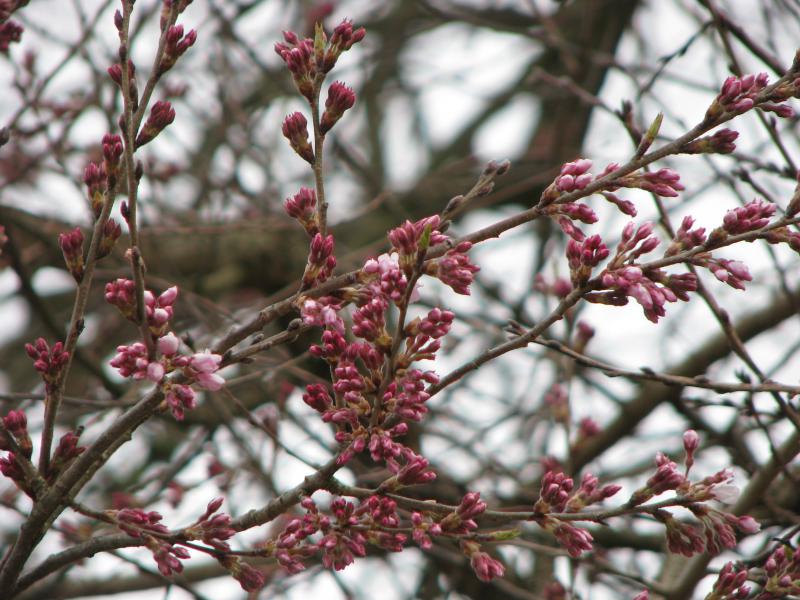 今朝も、肌寒いです。久保桜は、まだ蕾です。