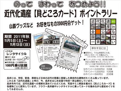 それぞれの建物に見どころカードを配置。2011年11月5日(土)〜13日(日)までの期間にそのカードを集めて長井駅南隣の売店に持っていくと、素敵なプレゼントがもらえるそうですよ(人数に限りがあります)。