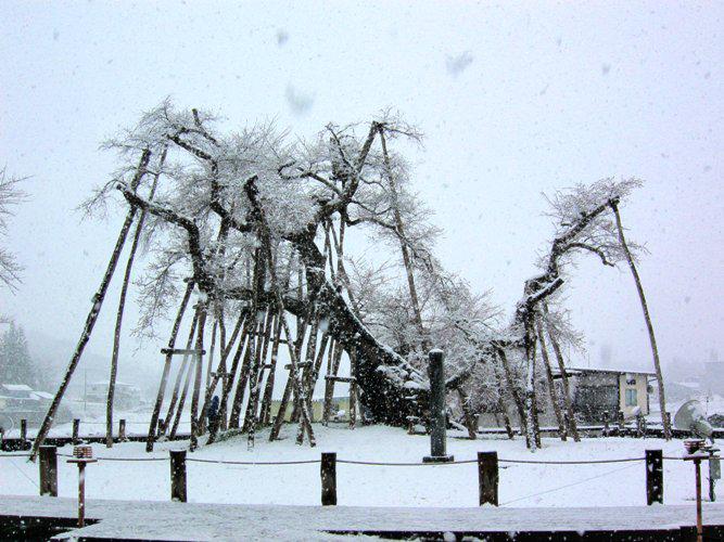 それでもツアーのお客様は桜と雪のコントラストを楽しんでました。