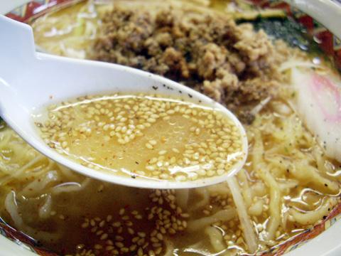 見た目は、スープが赤〜く具材もたっぷり胡麻の香りがただようラーメンでした。