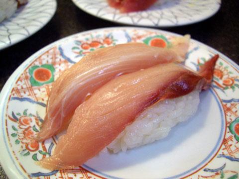とはいっても、平日はほとんど回ることはなく、その場で握ってくれます。自分が気に入っている理由は、なんといってもそのネタの巨大さ。写真は「はまち」ですが、これは回転寿司で見かけるようなサイズではないですね、、。新鮮なネタによるおいしい味も好きな理由のひとつです。また、あまり見かけないネタが多く、季節によっても、おすすめのネタが変わってくるので、その時期においしい寿司が食べられます。気になるお値段ですが、平均一皿168〜210円くらいのお値段なので、内容と比べればとても満足のいくお値段です。ぜひぜひ一度、味わってみてはいかがでしょう??