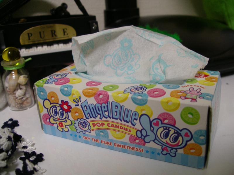 かわいくてちいさなエンジェルブルーのテッシュだよ。