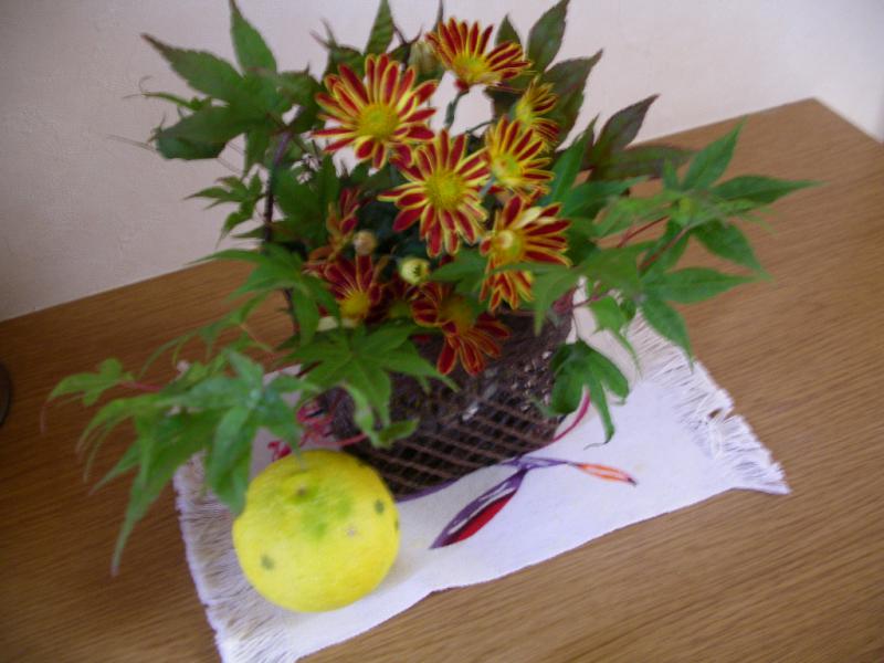 いただいた舞茸に添えてあった紅葉を飾りました♪