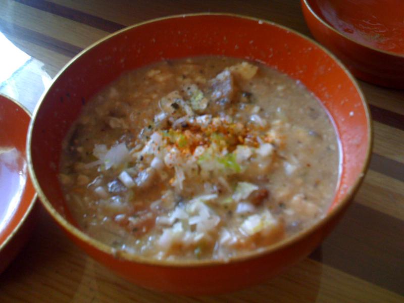 ネギや紫蘇や赤唐辛子を入れて・・・