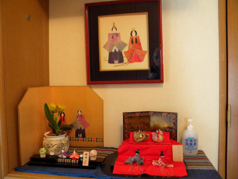 玄関にミニミニひな飾りがーー。