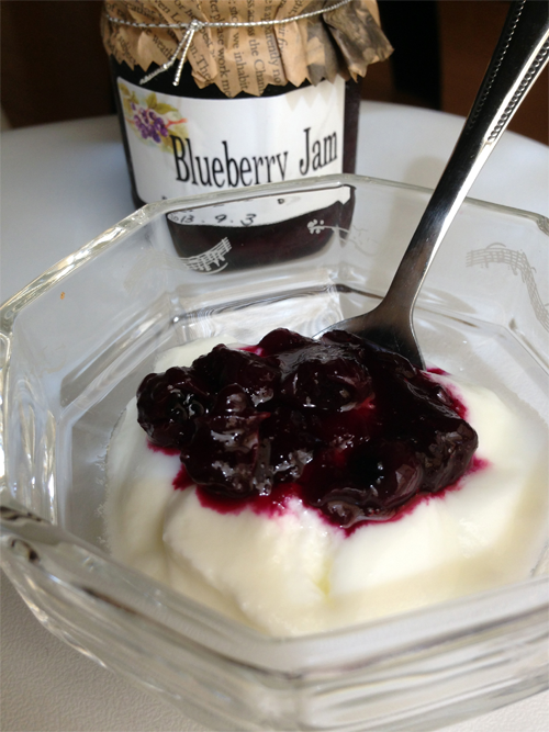Hさんの奥様手造りのとってもおいしいブルーべーリージャム♪朝食にヨーグルトにトッピングしていただきました〜