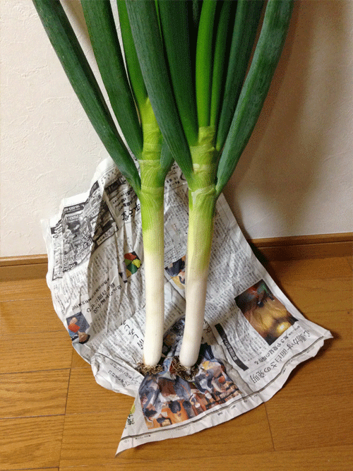 お隣のAさんは、畑で採れた旬の新鮮なお野菜をときどきお裾分けして下さいます。いつもご馳走様です。それにしても、こんな太くて大きく立派なネギをみたことありません。感動モノです♪炒め物や煮物にして美味しく頂きました(^Q^)