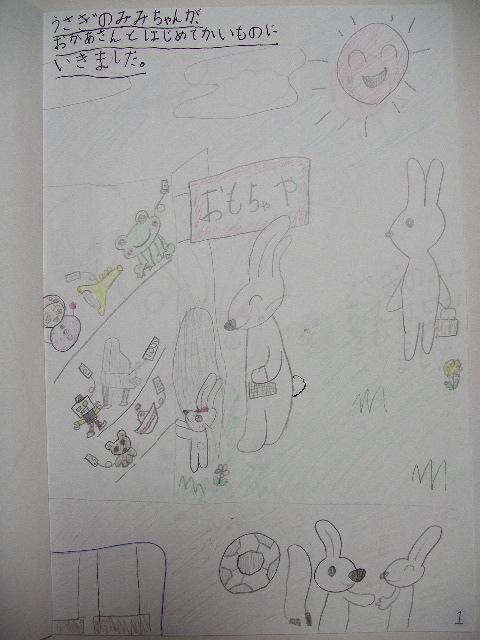 うさぎのみみちゃんが、おかあさんとはじめてかいものにいきました。