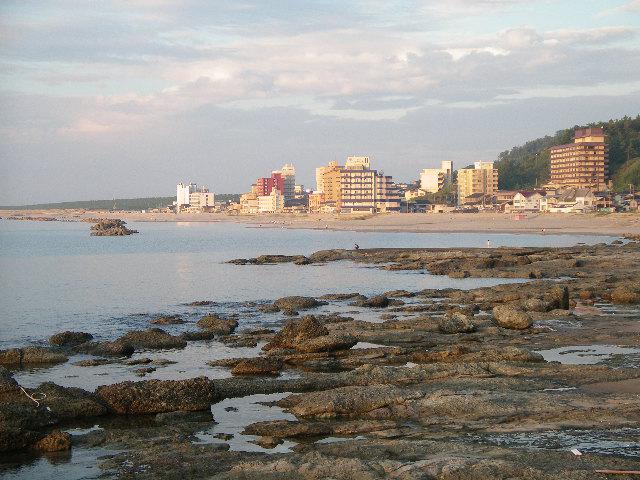 夕景の湯野浜を望みます。