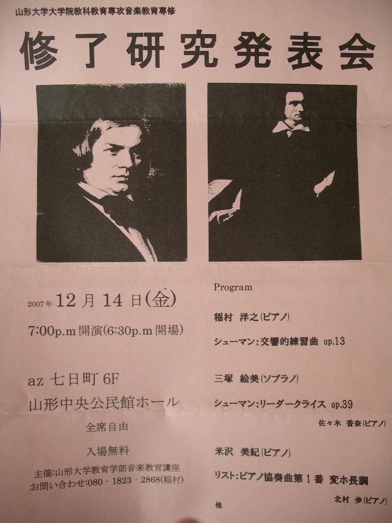 シューマンの交響的練習曲やシューマンのリーダークライスやリストのピアノ協奏曲第1番変ホ長調などたのしめますよ。