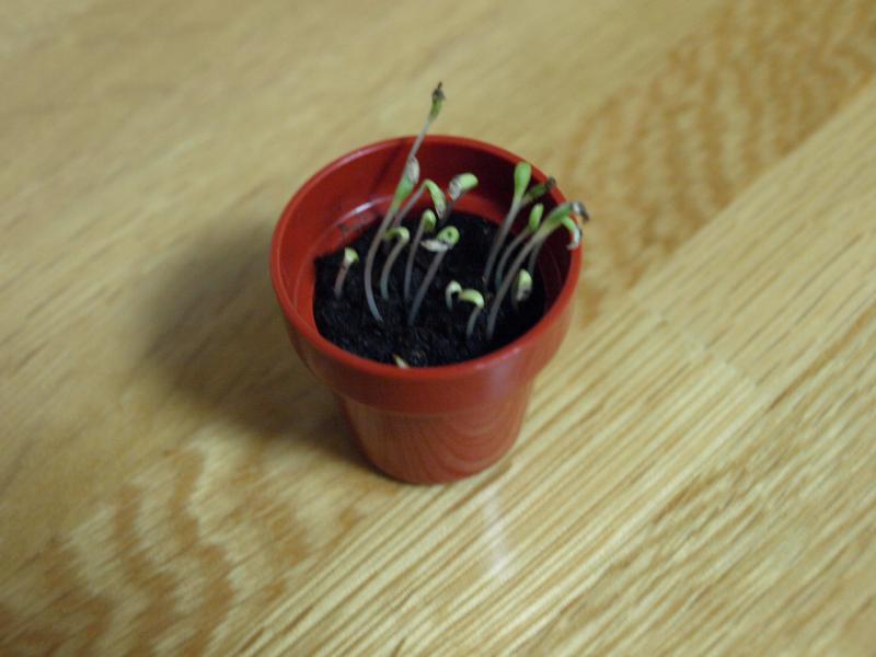 ペットボトルのおまけでついてきたサニーレタスのたねから芽がでてきましたヨ!