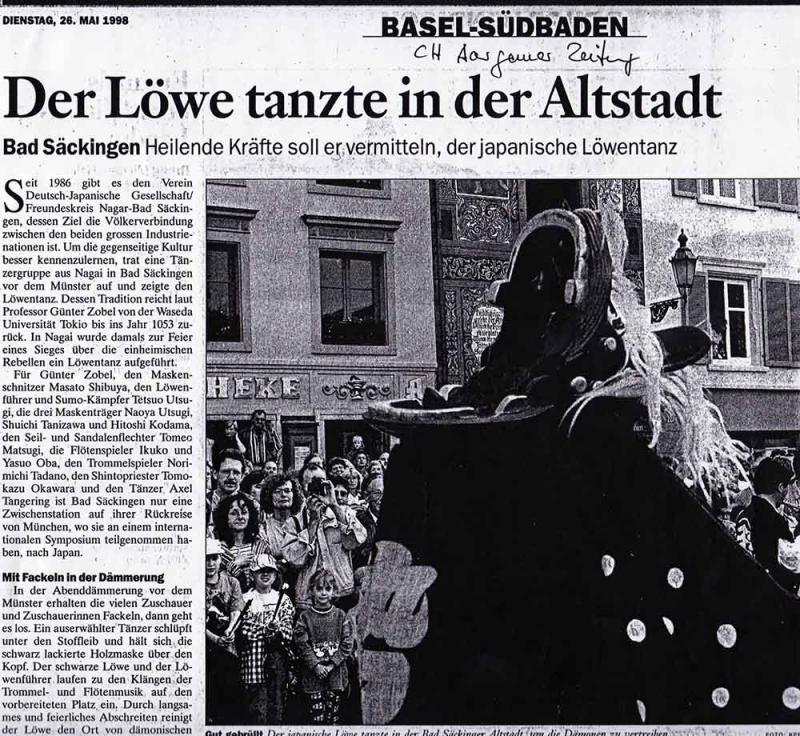 1998年長井市の姉妹都市であるバート・ゼッキンゲン市に長井黒獅子研究会で獅子舞交流を