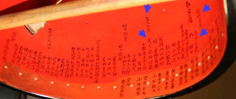 記名については赤外線撮影で、大規模に修理の際、現在表記なっているものを塗りつぶし