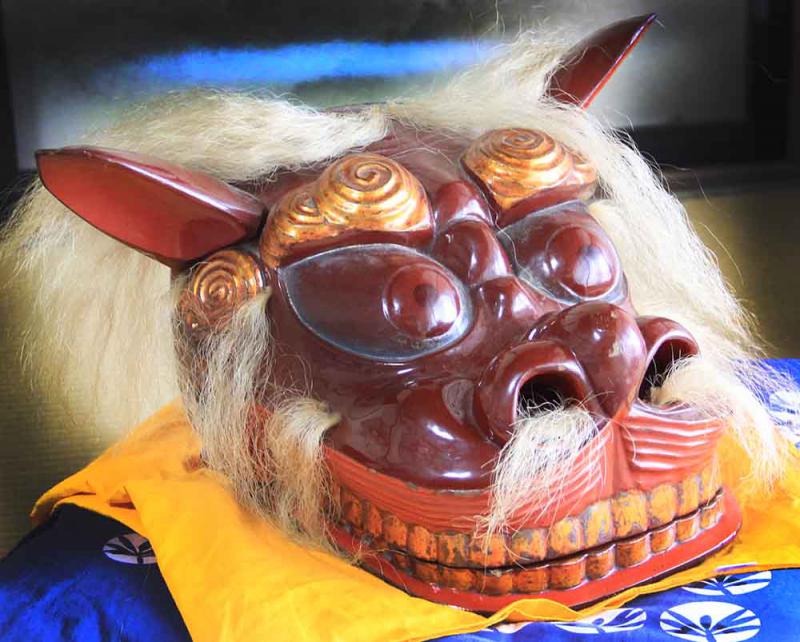 さて、自分で管理している古い獅子頭につき、ネットで簡易調査をしていたところ、偶然、貴ブログにたどり着きました。私は古い獅子頭を2つ保有しており、(但し1つは上あごのみで、かつ耳なし。色は赤ベース。もう1つは耳が後付けで舌もなし。色は黒ベース)その時代や地方を調べております。一見したところ、相当の年数を経たものであることが窺えます。前者は長野の旧家から譲り受けた物ですが、長い間蔵にあって、誰も触れていないため、持主様も詳細は不明とのこと。確かに埃だらけです。後者は東北地方ではないかな、と推測しております。