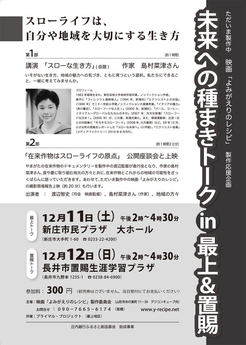 ただいま製作中の映画「よみがえりのレシピ」の応援企画として、