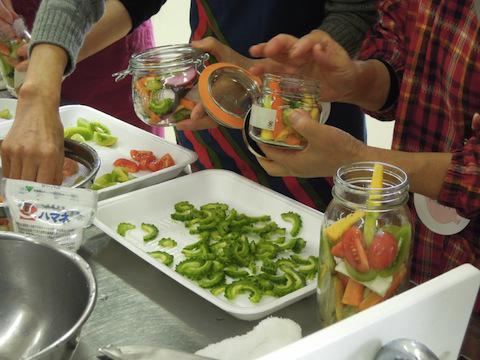 各々、好きな野菜を好きなように切って瓶に詰めていきます。