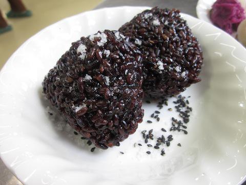 蔵王晴耕園さんの黒米100%のおにぎりも作りました。