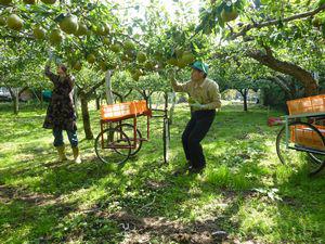 本日、ラ・フランスの収穫の様子を撮影しました