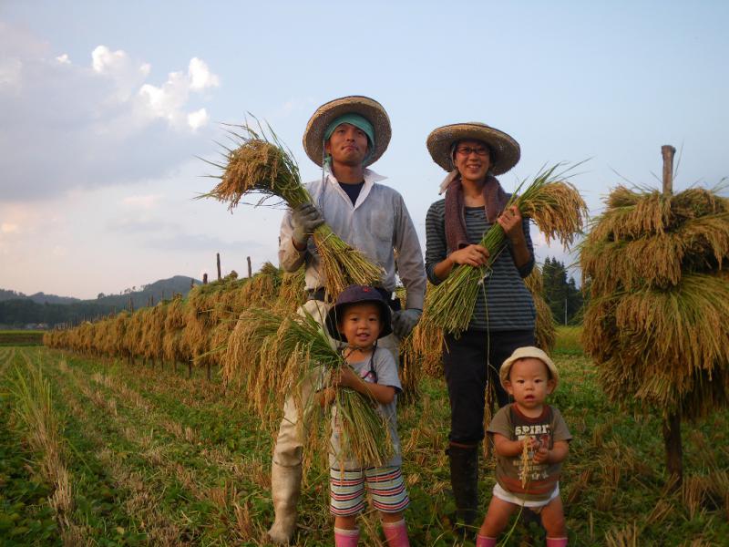 Iターンで山形に移住した夫婦で、農薬を使わないで米・小豆・大豆を栽培。