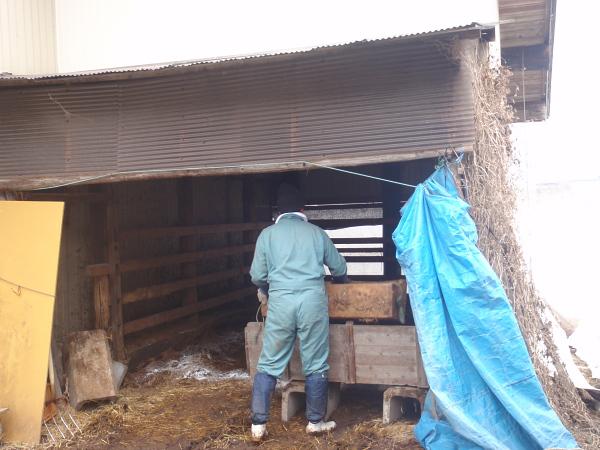 写真は子牛を入れる場所を準備しているところです。