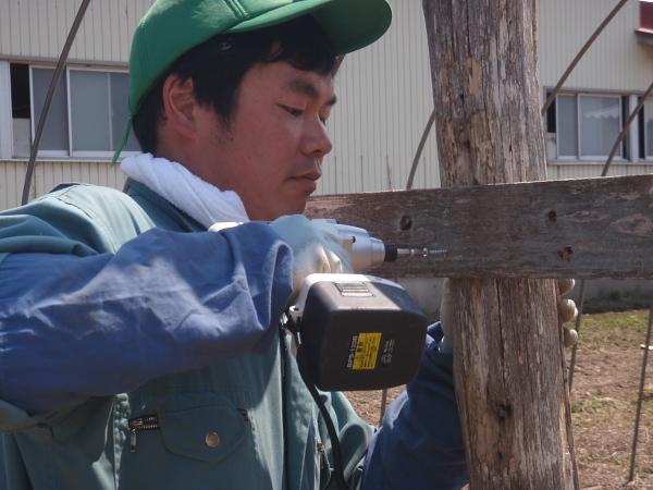 補強の木を打っている9代目。