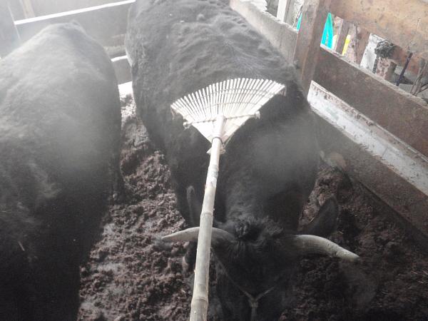 初めての牛は熊手が近づいてきたとき逃げるけれど