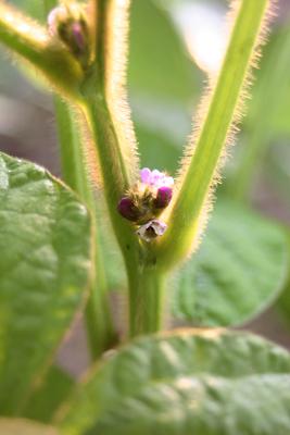 毛豆の早く種を播いた畑で、花が咲き始めました。