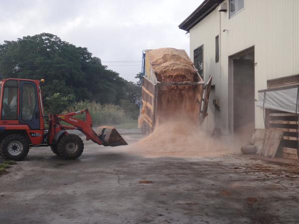 ちょうどオガクズを製材屋さんが運んできてくれたところでした。