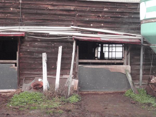 牛舎はコンパネなどをあてて