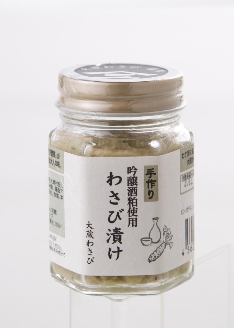 自ら生産する生鮮わさびの規格外品を加工利用し6次産業化を図った商品。地元の蔵元の熟成させた酒かすを使用。
