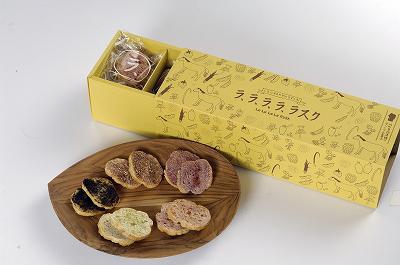 平成25年度やまがたふるさと食品コンクール入賞商品 【特別賞(山形日和。賞)】 ▼商品名ラ、ラ、ラ、ラ、ラスク1個(2枚入り) 94円5個袋入り 500円15個箱入り 1,580円 ▼企業名(お問合せ先)長井西置賜菓子組合 ラララ部会(7社) ▼菓子司 福田屋住所:山形県長井市草岡715電話:0238-88-2608 FAX:0238-88-3851 ▼風林堂菓子店住所:長井市本町1−3−17電話:0238-88-2373 FAX:0238-88-3543 ▼松屋菓子店住所:長井市台町4-18電話:0238-88-5607 ▼萬寿屋本舗住所:長井市館町北7-7電話:0238-84-0022 FAX:0238-84-0098 ▼株式会社香月住所:山形県西置賜郡飯豊町椿2575電話:0238-75-3923 ▼木村家本店住所:山形県長井市栄町7-40 ▼志保家菓子店住所:山形県長井市今泉563-10