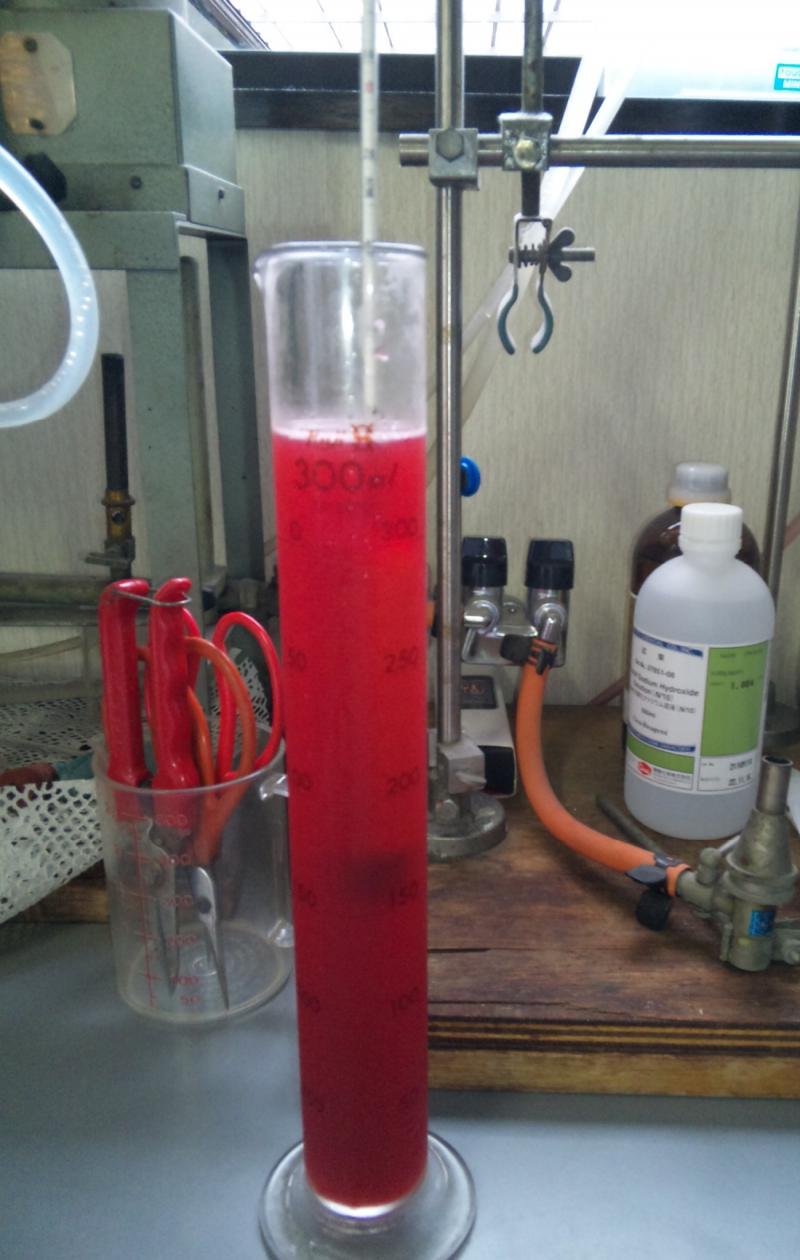 画像は果汁の比重を計り、糖度を調べてます。ぶどうと比べっと低いげんと、今年のも例年くらいの糖度でした。ソルダム果汁の色はまさにルビー色して、とてもきれいです。すもも3種類のワインの中で唯一赤で出してます。