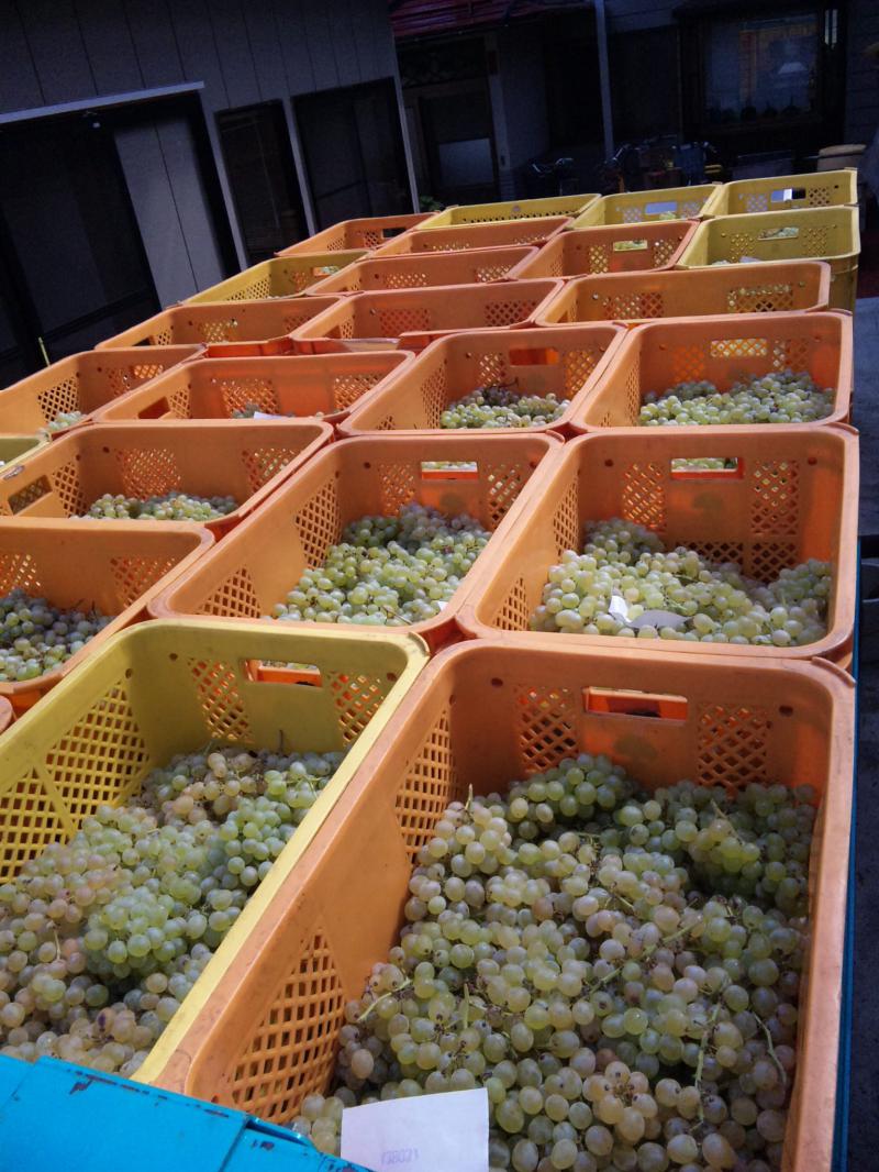 今日は白ワイン用ぶどう品種、セイベル9110でワイン仕込み。約4トン搾りました。果汁は上澄みと澱にすぐ分離するので、作業し易いぶどうです。
