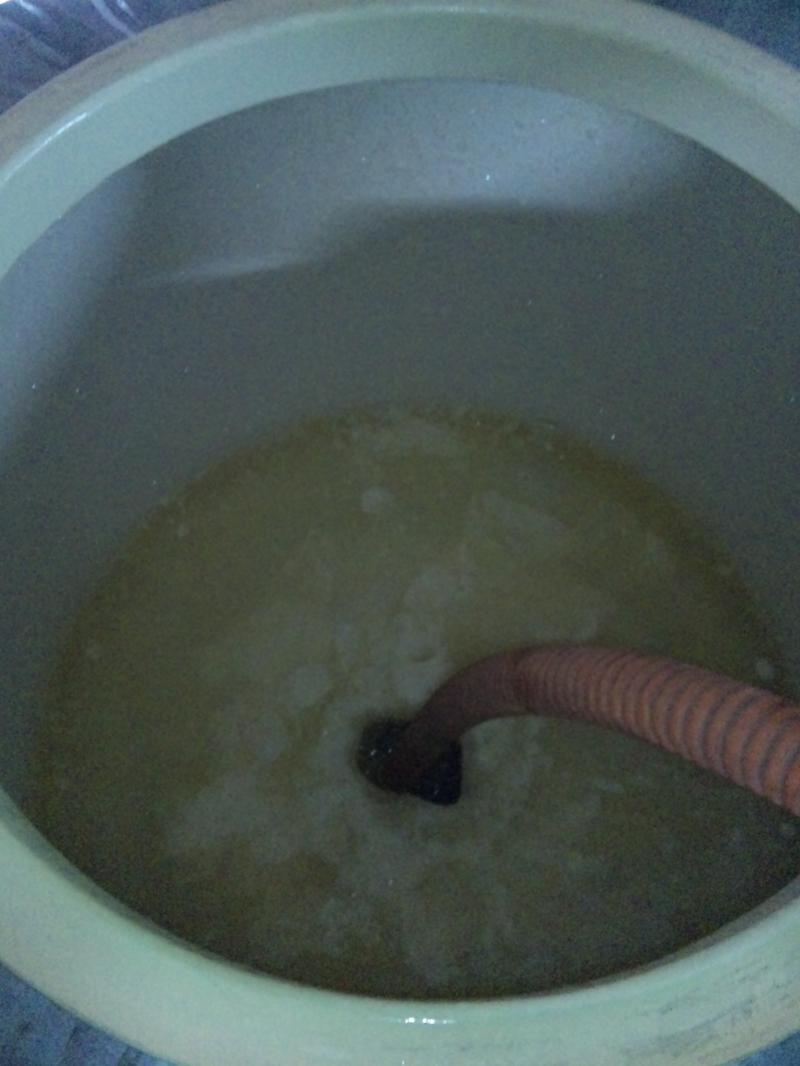 9月の中旬に仕込んだナイアガラの果汁を、しばらく冷却タンクの中で凍らせていました。氷結によって余分な水分を除去し、糖度が高くなったタンク中心部の果汁をポンプで汲み上げているところ(画像)。