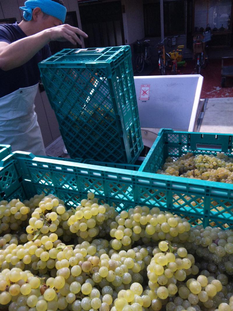 今年に入ってほとんど休み無しでのフルイニング出場している為、疲れが溜まりどうやら風邪をひいたようで、ホントでねぇ体調だげんと今日は今年の仕込みが始まって一番多い数量を仕込みました。午前中にシャルドネ2トン、ベリーA4トン、午後からベリーA6トン、計12トン。シャルドネは白ワイン用なので搾ってタンクへ果汁を送り、マスカット・ベリーAは赤ワイン用なので破砕した実をタンクへ送りました。