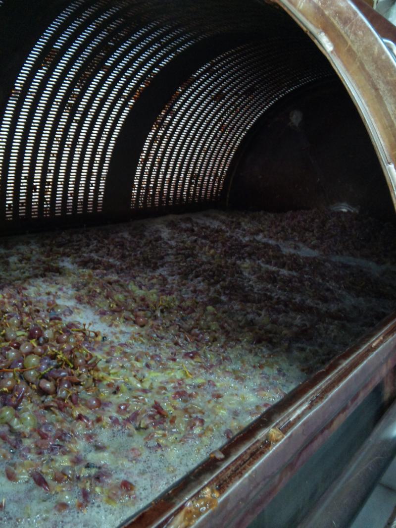 一昨日仕込んだ甲州です。ブドウを破砕した後、プレス機の中でしばらく皮と果汁を接触させるスキンコンタクトを行なってるところの画像です。通常だと、すぐ搾るわけなんだげんと、甲州は他の品種より大人しいので品種特長をより濃く出す為に、搾汁前に半日くらいおいてから搾ります。搾った果汁はちょっと黄色味が濃くなり、味も濃くなりました。
