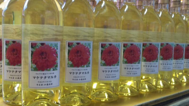 今回福島のお客様にご注文を頂き、そのダリヤのシール作ってボトルの裏に貼りました。情熱的な赤が白ワインに映えます。