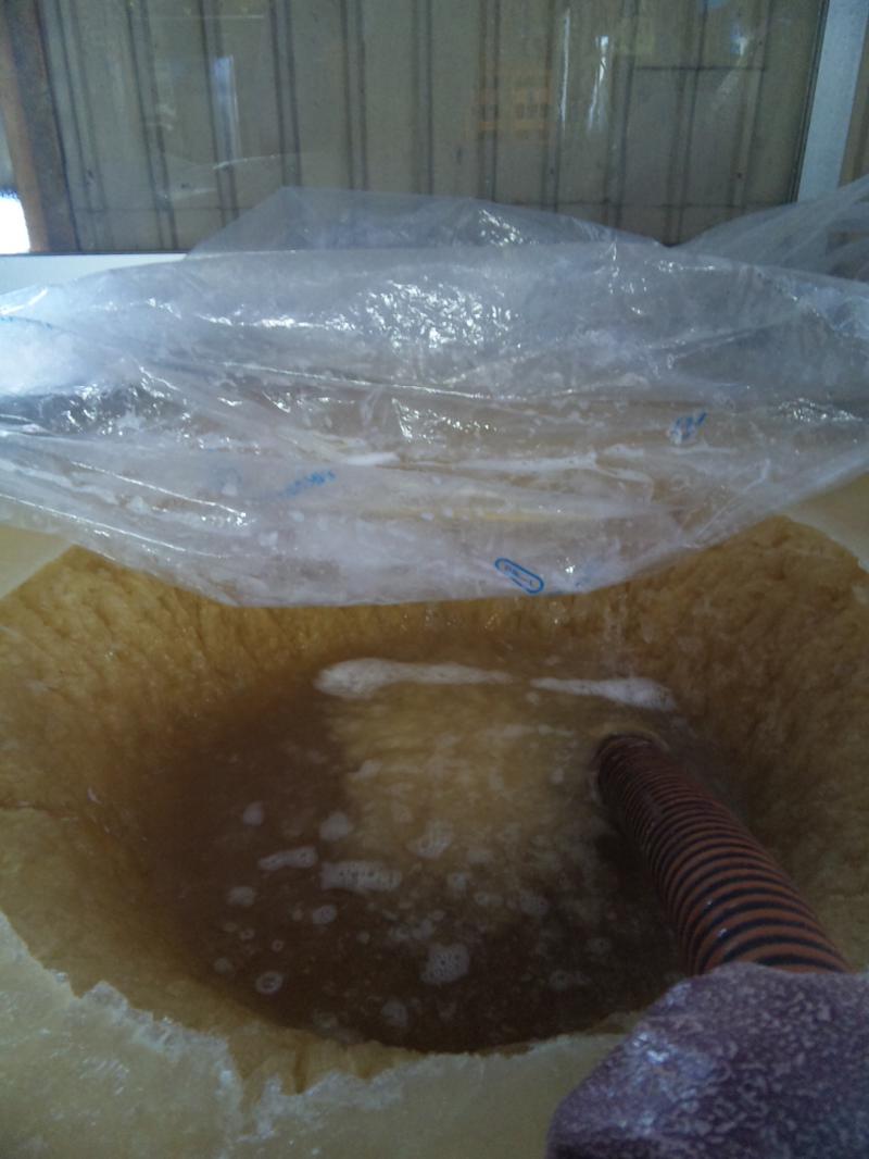 昨年末に搾った氷結ナイアガラの果汁を更に凍らせて、40度位糖度が上がったので、発酵タンクへ果汁をポンプで送っています。