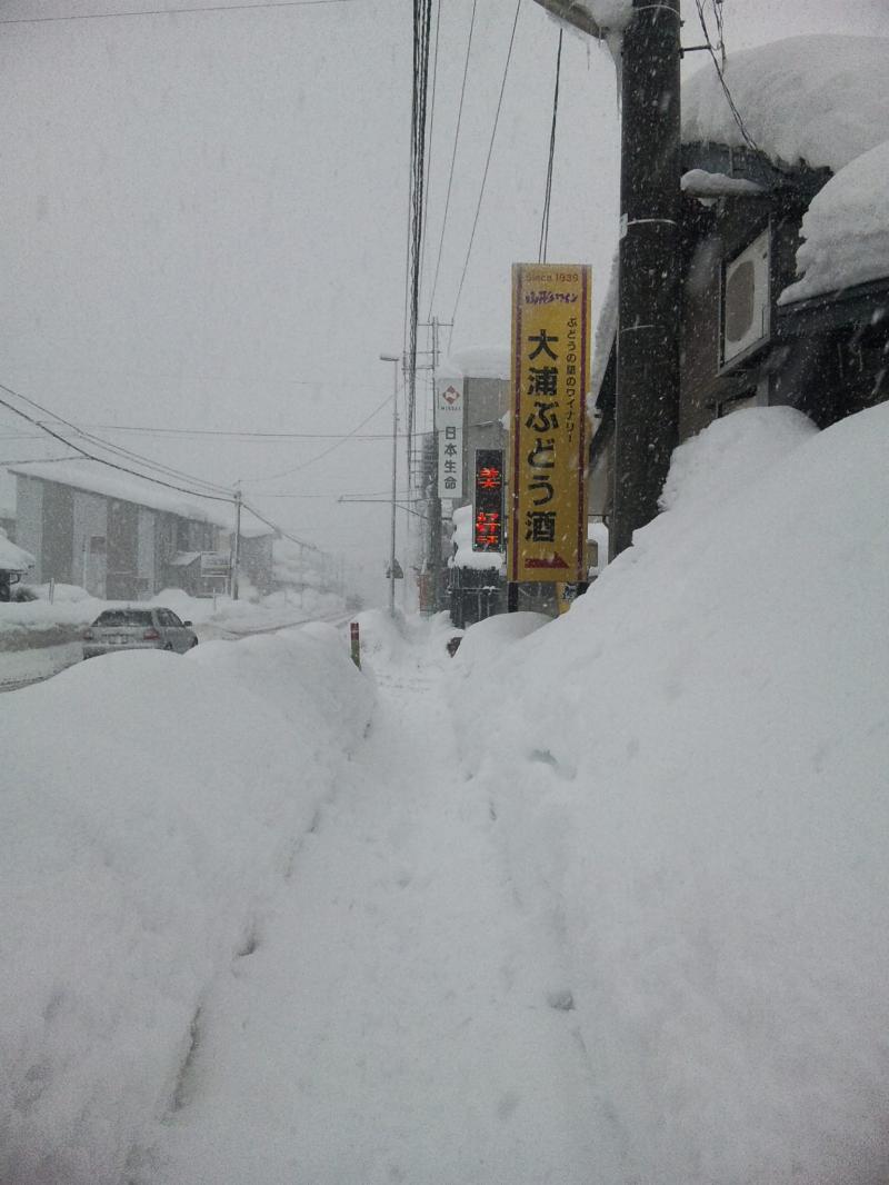 今日の担当幹事でなければ、近くのイオンタウンの駐車場で引き返してたと思うげんと、一応幹事なので何とか山形市まで行がんなねべと言う気持ちがあり、赤湯の難所と言われる鳥上坂へ、対向車の微かなライトしか見えない状況で向かって行きました。鳥上坂の脇には登れなくなったトラックやスリップしたような乗用車が多数… 決死の覚悟で登りきったげんと、その先は渋滞に。携帯を見ると他のワイナリーから今日はダメという電話やメールが入っていて、車を停められるような場所で、大雪の為中止の連絡をすることに… いやー参ったなぇ(>_