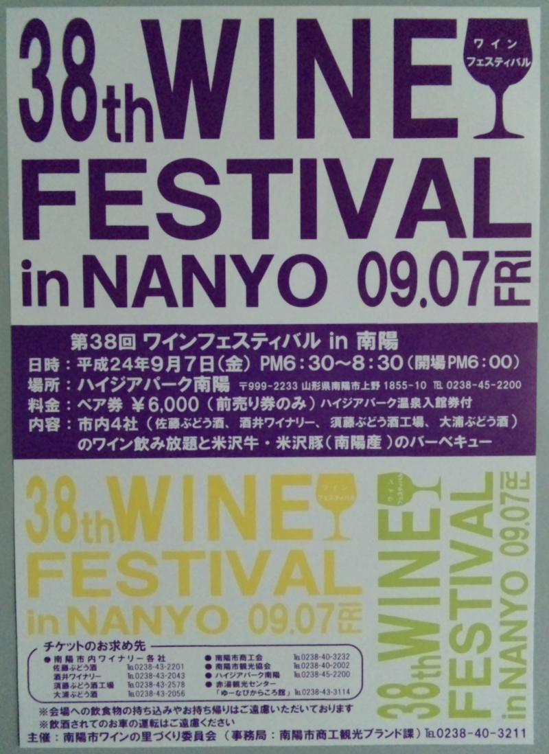 ▼『第38回ワインフェスティバルin南陽』のお知らせ