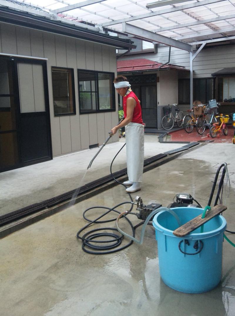 けっこう盆前にデラウェアーが溜まったので、盆明け早々に1回目のワイン仕込みをする予定です。その前に仕込み場や蔵をきれいに掃除。今日は洗浄機で床をきれいに。きれいな酒質のワイン造りというのも、おらいのモットーのひとつなので作業場もいつもきれいにするように心掛けてます。
