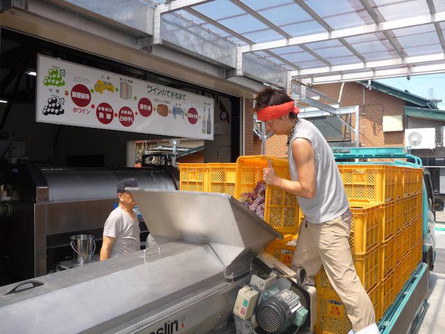 いよいよ今日から本格的に2012年のワイン仕込みをスタートしました。今日は記念すべき一発目ということで、盆前に集めたちょっと酸味があるデラウェアーでのワイン仕込み。赤湯ヌーヴォー・ロゼのベースになるワインです。8月の最後のギリッと甘ごい完熟デラで仕込む甘口の白に対して、フレッシュさを出す為に少し早い時期のデラでロゼ用を仕込みます。