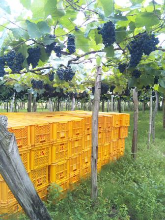 画像は、武田さん(高畠町)のブラック・クィーンの畑。長年良質のブラック・クィーンを作って頂いてます。今年は雨が少ない為病気もない状態です。色も糖度も乗ってきてそろそろ収穫する為、今日コンテナを畑に置いてきました。まだ赤用はベリー・アリカントAだけしか仕込みしてねぇげんと、これからいよいよ本格的に赤ワイン用ぶどうが始まります。