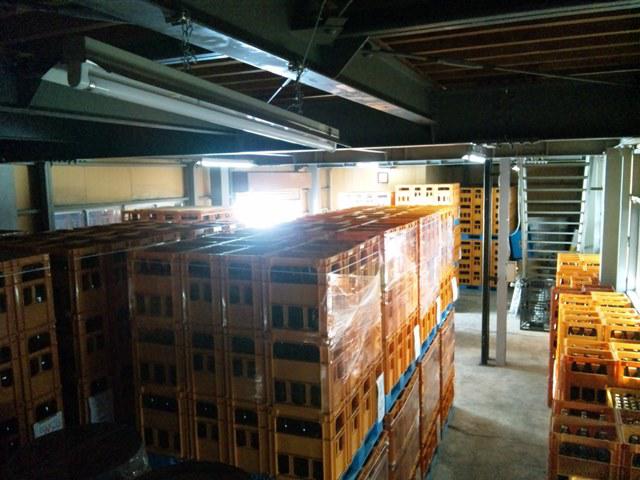 おらいのぶどう原液貯蔵庫です。秋に仕込んだぶどう原液を一旦一升瓶さ詰めて、現在冬の自然の寒さで低温貯蔵してます。この寒さで、ぶどうに含まれる有機酸のひとつ酒石酸が結晶状になって固まり、瓶底へ沈澱します。春頃空け替えして、酒石や澱を取り除き製品用の瓶に詰めます。