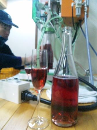 ▼『オオウラスパークリング沙蘭(シャララ)・ロゼ』充填