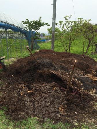 去年一年間分のぶどうの搾りかすを畑に堆肥として撒きました。